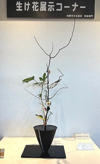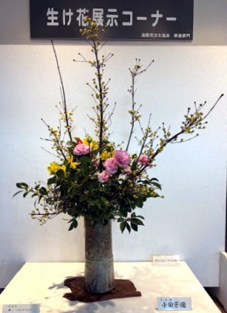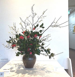 【池坊】 小田 美都子 花材…ボケ、ツバキ、カクレミノ |