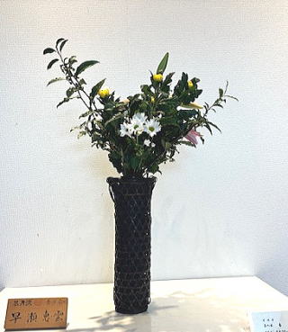 【花月流】 早瀬 恵雲 花材…茶の木、菊、オリエンタルリリー |