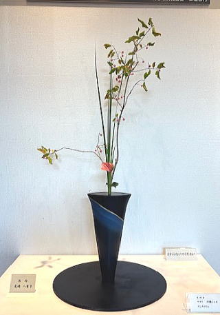 【池坊】 尾崎 八重子 花材…マユミ、沖縄シャガ、アンスリウム |